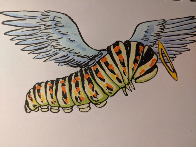 #inktober 24, heavenly caterpillar. Using the AI bot animals prompt this year. #drawtober #drawtober2021 #botober #botober2021 #inktober2021