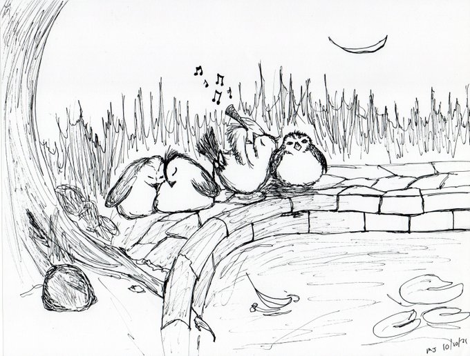 #inktober2021 #botober2021 retrospective: my #Top4 favorite inkings I did (in no order, from the Animal prompt) --Impossibly cute pudgy birds --Freakin' whale --Porcelain squirrel --Eight-legged cat