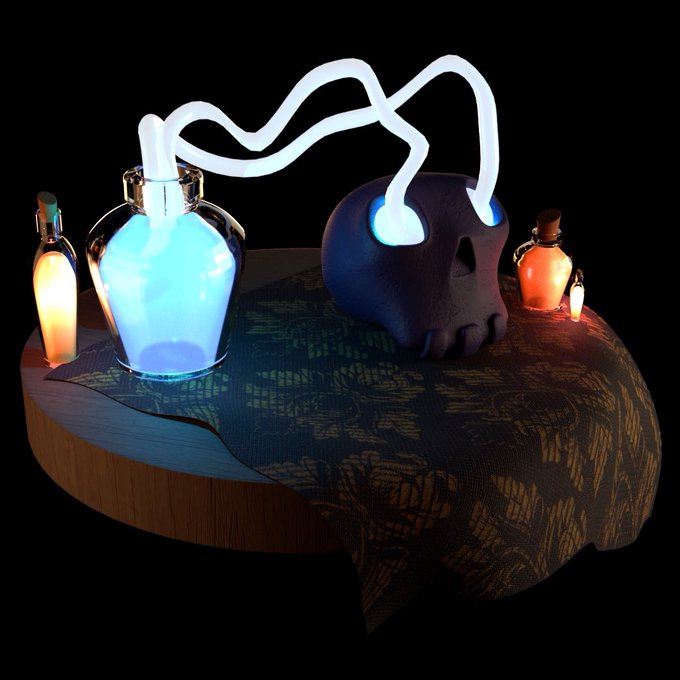 INKTOBER DAY 6 : SPIRIT ! Well, had troubles with maya this time, but a lot of crash later, I can finally show you this one ! #inktober #inktober2021 #inktoberday6 #spirit #skull #lights #magic #bottles #maya #3D #3dmodeling #frenchartist