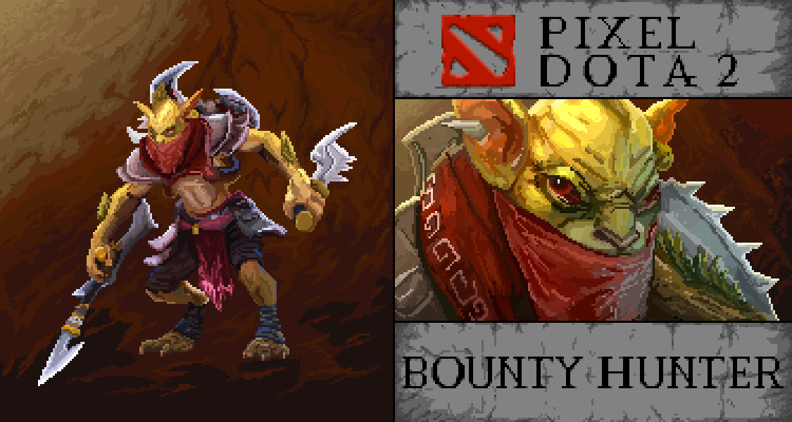 Dota 2 hero number 12: Bounty Hunter #dota #dota2 #dota2heroes #dota2fanart #bountyhunter #pixelart #digitalart #ArtistOnTwitter