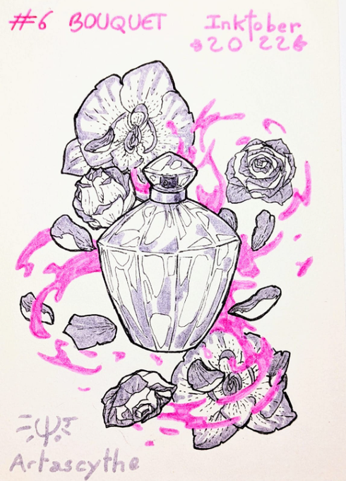 You know it's still #inktober2022 lol okay. I did it for the prompt #bouqet. I had fun with inks that day #smltart #authenticbaby @inktober @SMLTArt #twitterart