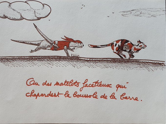 @Marahahah #inktober2021 jour 16 : "COMPASS" Par @CaptainCalahaan et @Marahahah #inktober #compass #illustration #humour #bd #fanzine #compasdansloeil #boussole #ourspolaire #croiseedesmondes #fanart
