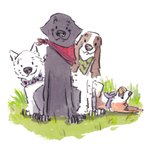 Good night, lovely people and lovely dogs. The four are having fun in the springtime sun. I am wishing you the very best. Sleep well and sweet dreams. #hoorayfordogs #westie #labrador #springer #beagle #tennisball #bowtie