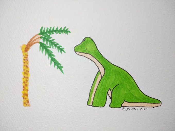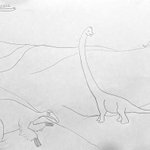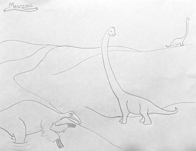 My daughter told me to draw something from the Mesozoic. And write “Mesozoic”. And draw a brachiosaurus. #mesozoic #brachiosaurus #deinocheirus #paleoart