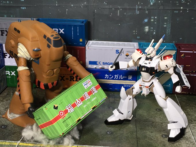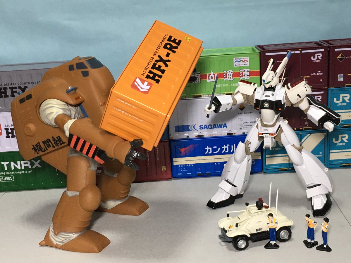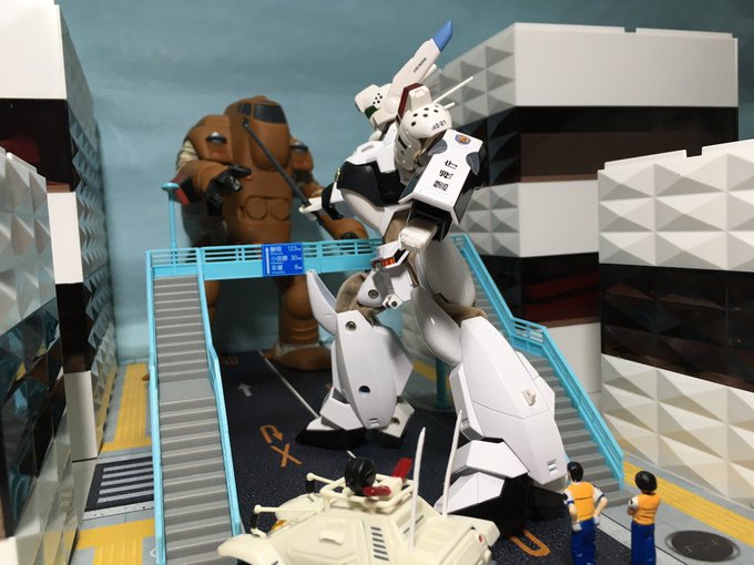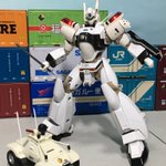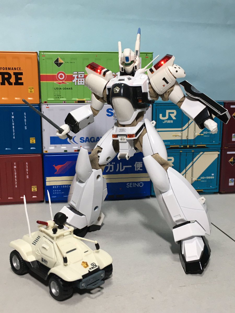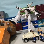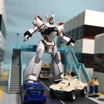 #夜のフィギュア撮影会 お題『逃』 盗難レイバーが逃走中!特車二課 第二小隊、犯人を確保せよ! #パトレイバー #機動警察パトレイバー #イングラム #brave合金 #超合金 #タイラント2000 #ソフビ #オモ写