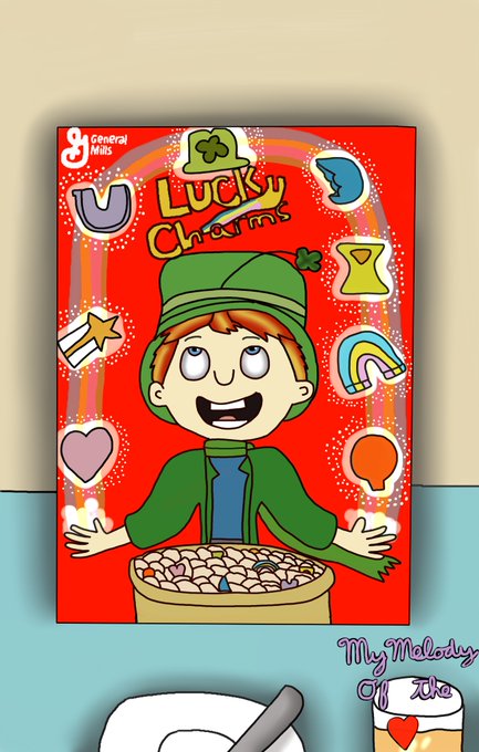 Artwork That I Made A Long Time Ago. It's Of A Lucky Charms Cereal Box, In My Art Style. Enjoy! 🍀 Fan Art By Me. #fanart #digitalart #breakfastcereal #digitalpainting #food #ArtistOnTwitter #artistsontwitter #artistsoftwitter #artists