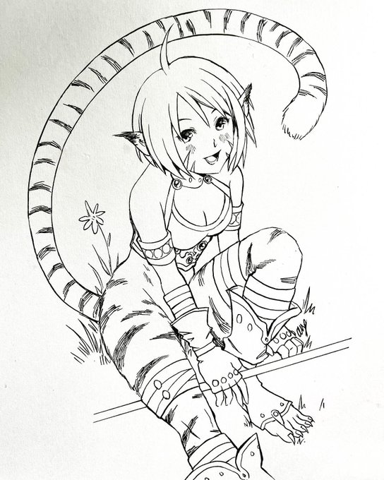 Inktober Day 26 Whiskers Katt/Rinpuu Height 154 cm Weight 42 kg Age 15 Blood type 0 #breathoffire #breathoffire2 #katt #rinpuu #inktober