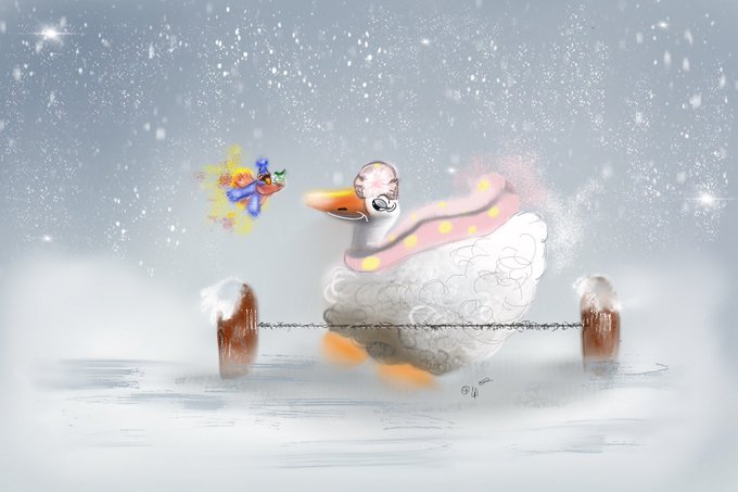 S is for #SebastopolGoose … @AnimalAlphabets .. Wishing Everyone a wonderful #AnimalAlphabets week! … #Breeds #KidLitArt #Illustration #Illustrator #Geese #Cardinal #SnowyDay 🦢💖❄️