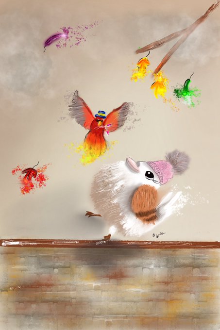 Almost there!!! .. T is for #TexelGuineaPig @AnimalAlphabets and of course that pesky cardinal! 😂 … Wishing Everyone a wonderful #AnimalAlphabets Monday! 💖🐹 #Breeds #Cardinals #KidLitArt #GuineaPig #Illustration #Illustrator #kleinKunstklasse