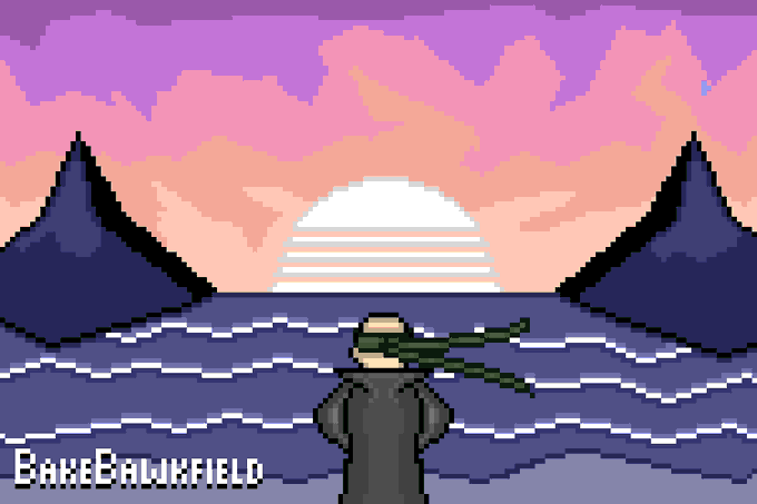 A nice #breeze at the beach for today's #pixel_dailies Theme: #breeze #pixelart #pixelartist #ドット絵 #aseprite #digitalart #art #pixel_dailies @Pixel_Dailies @PixelTheme #beach #bandana #sunset #mountains #waves