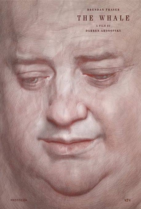 Last year, @DarrenAronofsky asked me to create the poster for The Whale. In my drawing, Charlie’s pain is full bleed and stretches beyond the margins, but his humanity and optimism breach the surface in the peaks and valleys of his face. @A24 #BrendanFraser #sadiesink #hongchau