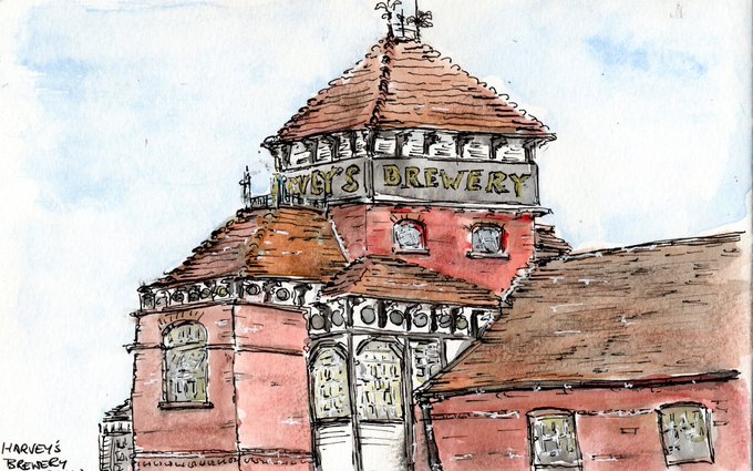 Thanks to Harvey’s Brewery in Lewes for letting us sketch there today. It was about 5 degrees this morning and I did this more quickly than I should. @harveysbrewery #beer #brewery #historic #architecture #Lewes #Sussex #art #sketch #watercolour #illustration