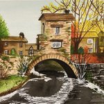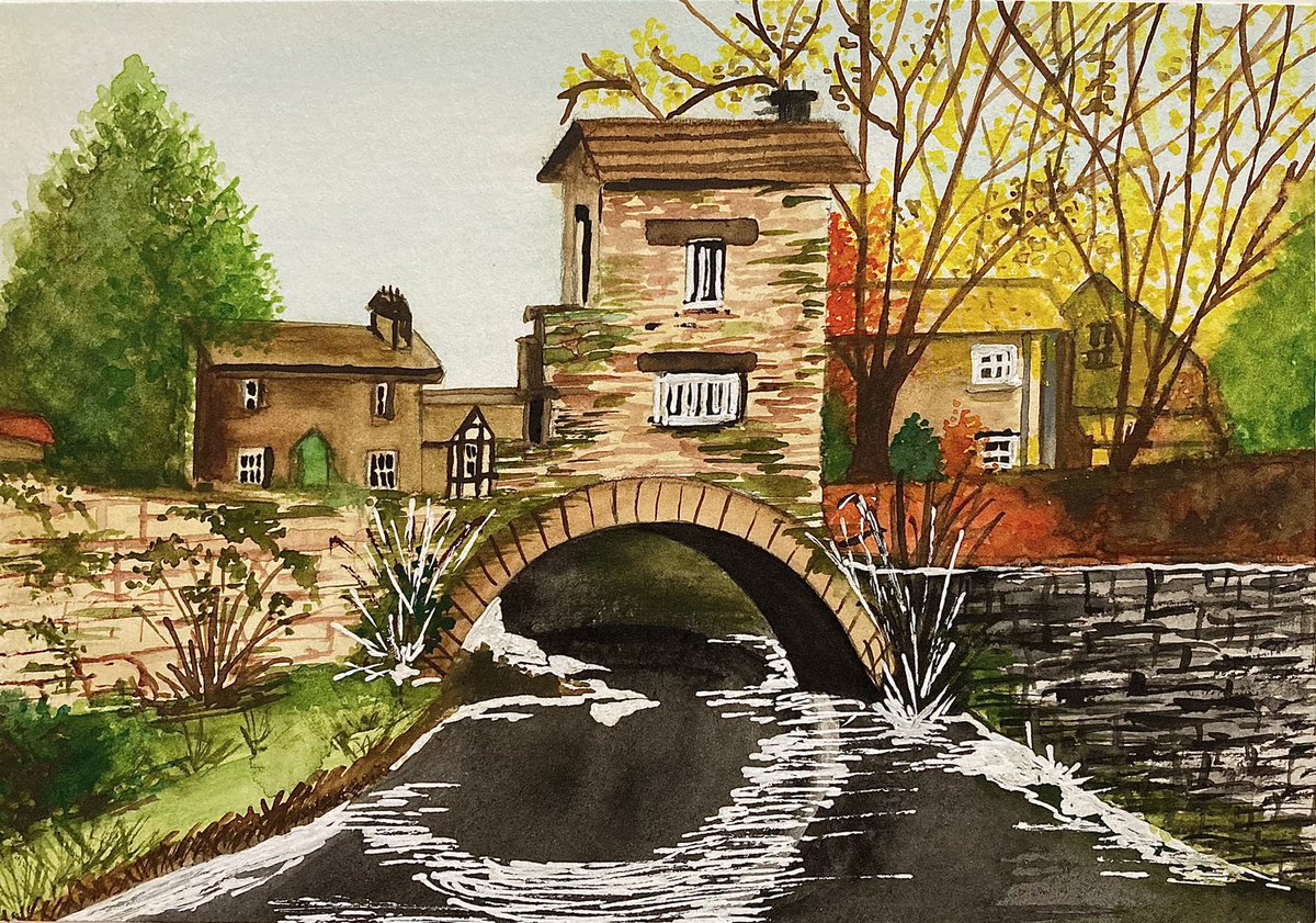 Painted from a black and white photo of The #bridge house - I gave it some warm, autumn colors. #watercolorpainting #watercolorart #handmade #trees