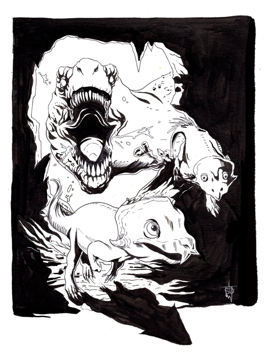 Day 3 of #samtober - Prehistoric - Two little Aquilops escaping into a cave. Looks like they barely made it! Wasn’t feeling great today but still pumped it out 🦾 #dinosaur #inktober #inktober2021 #prehistoric #dinosaurart #mamga #mangaart #pentelbrushpen #bristol
