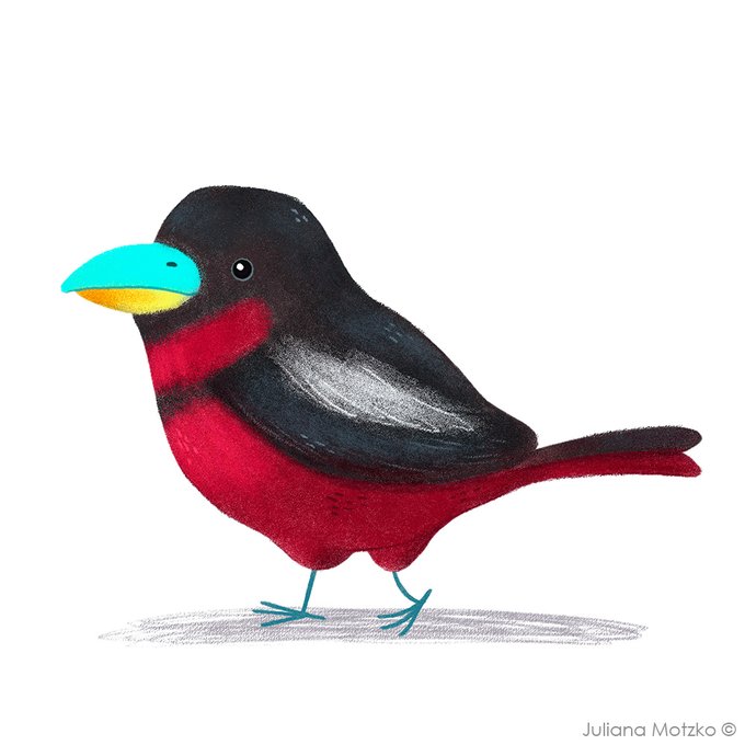 Black and Red Broadbill. Design available in my stores. Link in Bio. #allcutebirds #blackandredbroadbill #broadbill #cutebirds #birds #cute #animal #illustration #illustrator #artist #characterdesign #kidlitart #kidlitartist #cuteanimals #art #JulianaMotzko