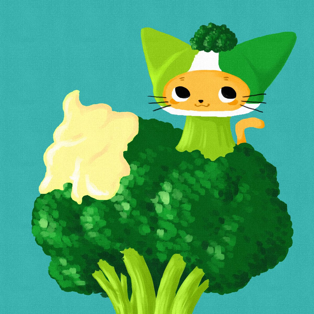 ブロッコリーを「美味しい」と思って食べれるようになった。大人になったな。 #ネコキャット #猫と仕事とお野菜と #ブロッコリー #broccoli #フリーランス #グラフィックデザイン #イラスト #illustration