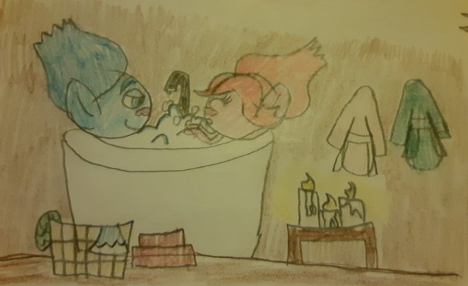 When Poppy comes to spend the night her and Branch would share a bubble bath. #dreamwastakenfanart #trolls #broppy #trollsfanart #trollsarttuesday #branch #poppy @Trolls @Dreamworks