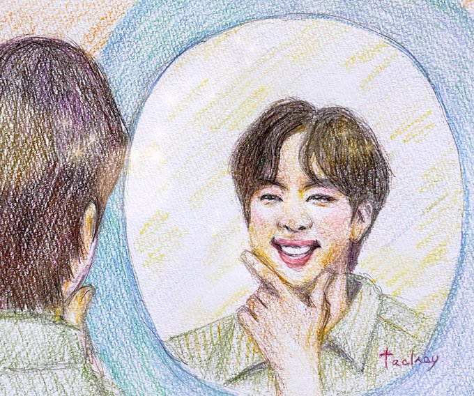 キラッキラの笑顔✨✨ でも背中はあんな感じ😁😁 #진 #석진 #김석진 #JIN #BTSJIN #Seokjin #KimSeokjin #jinfanart #btsジン #musicbank