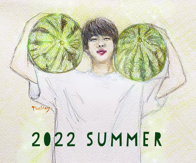 暑中お見舞い申し上げます🍧 スイカで更に小顔効果😳😳 #진 #석진 #김석진 #JIN #BTSJIN #Seokjin #KimSeokjin #jinfanart #btsジン #スイカ #暑中お見舞い申し上げます