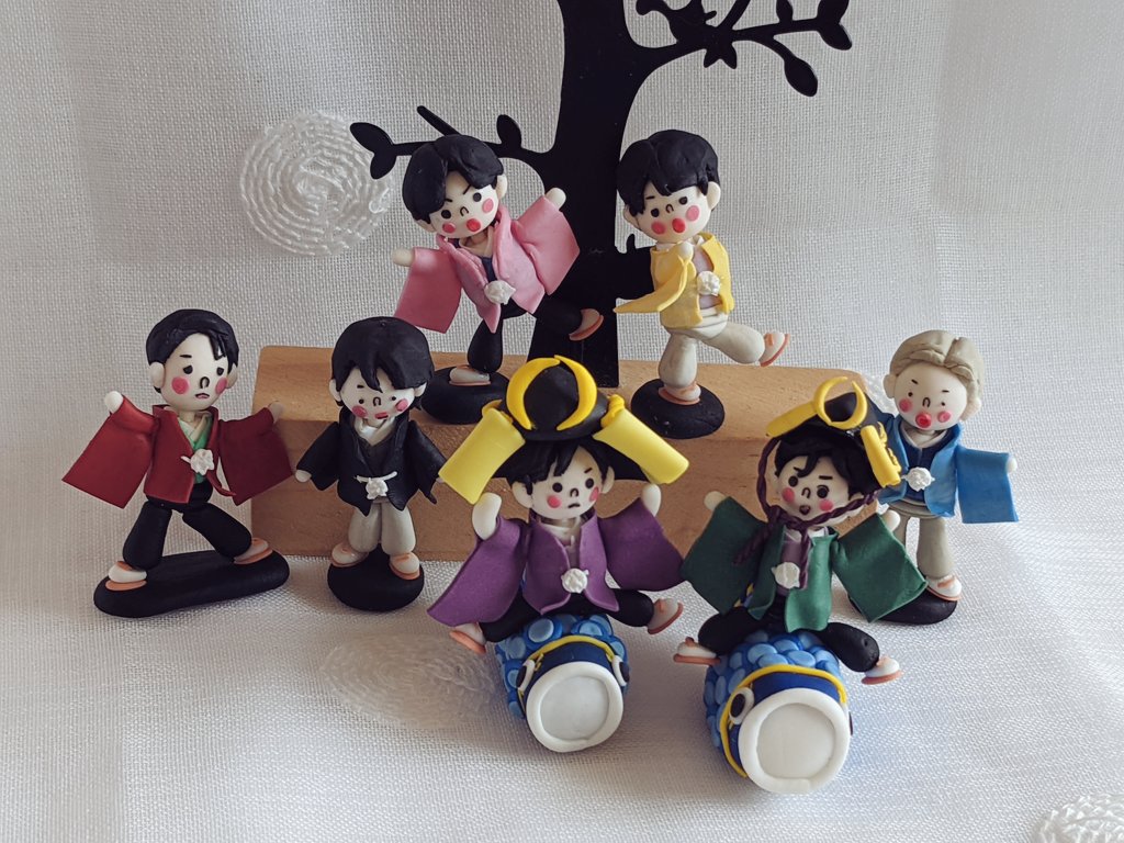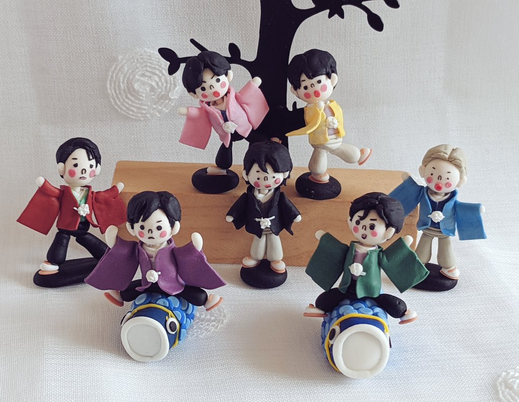 #BTS三昧 聴き逃しを聴きながらひたすら捏ねて完成しました〜🎏 人形の顔はうりさん @junguccivliton7 のイラスト デザインをお借りして作りました☺️ うりさんのイラストの保存&ご使用は注意事項をお守りください🙇 #btsfanart #樹脂粘土 #btsハンドメイド #btsarmy #bt21 #うり活