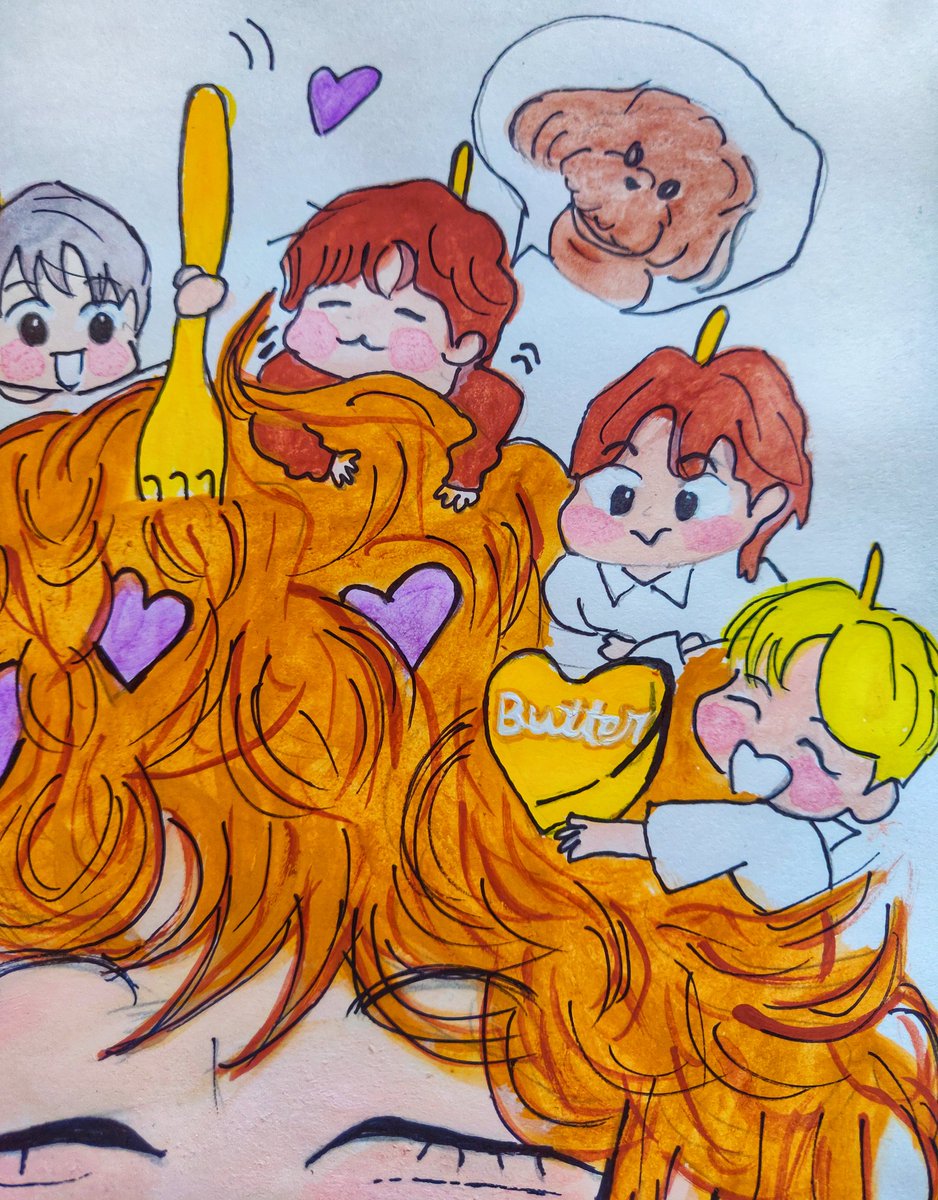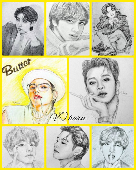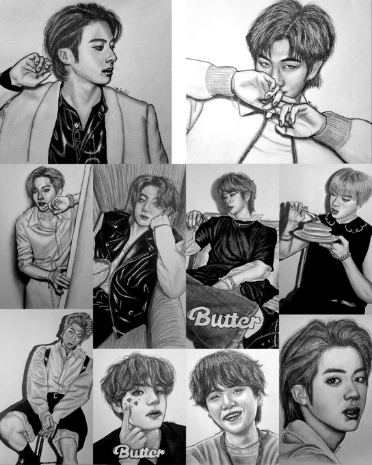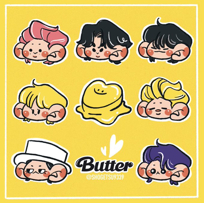 Butter🧈1周年だったんだね! ということでButterの絵を集めてみました😊あれ、もしかしてPTDも混ざってるかな?記憶が曖昧でスミマセン🙏💦これからはなんの絵を描いたのか記録しておこうㅋㅋ #BTS #Butter 🧈 #BTS_Butter 🍞🧈 #1YearWithButter 💜 #btsfanart 🎨