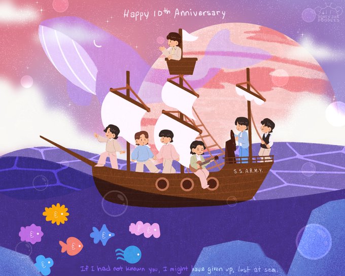 Happy 10th anniversary to my 7 favorite guys 💜🦋⭐️ #bts #BTS10thAnniversary #BTSFesta2023 #fanart