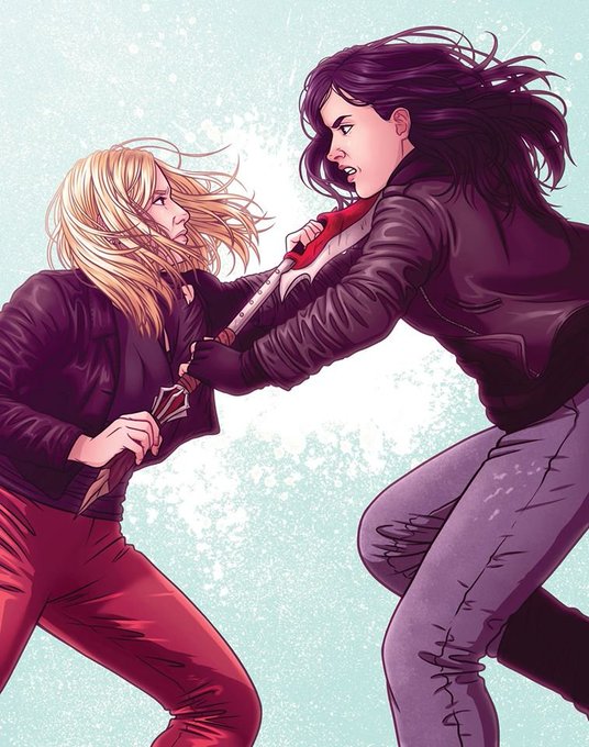 As both these ladies are trending, who would win a fight between Jessica Jones & Buffy? Art by @thegoodnaysayer, go follow her! #DeathBattle #Marvel #DisneyPlus #BtVS #BuffySlays25 #Buffy #JessicaJones #Comics #BuffyFanArt #JessicaJonesFanArt