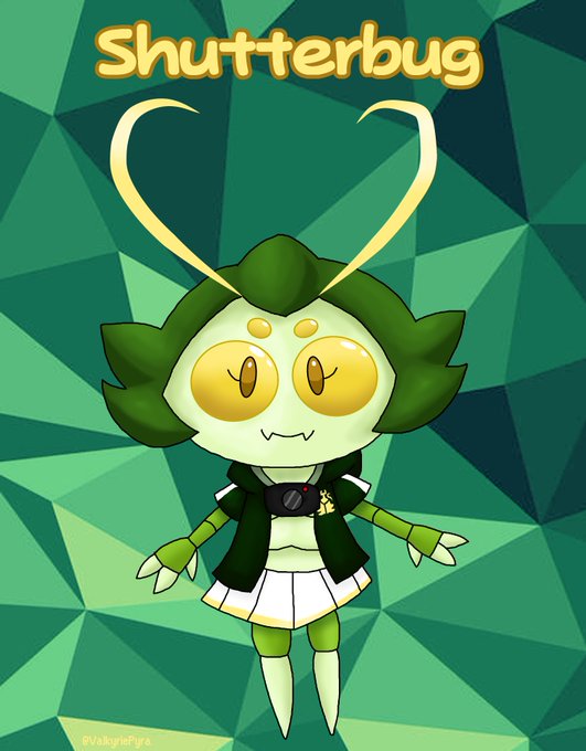 New OC time! Shutterbug is a tiny insect with a passion for photography and livestreaming. She's not going to let her diminutive size stop her from doing what she loves, even though her controller is huge... #ArtistOnTwitter #OC #originalcharacter #Vtubers #bugs #characterdesign