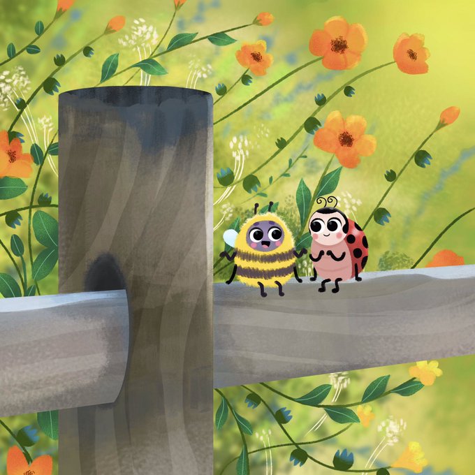 The friendly fence bugs 🐝🐞 #art #illustration #kidlit #digitalpainting #drawing #scwbi #イラスト #illustrationart #kidlitart #animalart #bugs