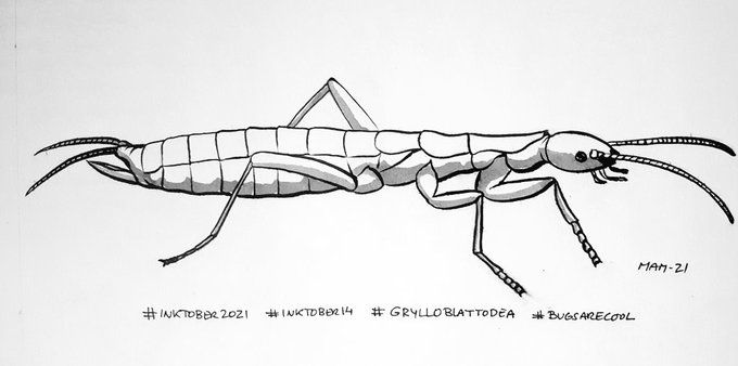 El 14º orden de #insectos os sonará al chiste del oso hormiguero y es que #Grylloblattodea parece una mezcla entre grillo y cucaracha, se originó hace 300 ma, tiene solo 34 spp. y habita en zonas frías de alta montaña #inktober2021 #icecrawlers #insects #bugsarecool @ento_e