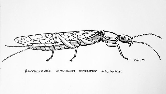 Las "moscas de las piedras" #Plecoptera son #insectos bioindicadores, los adultos son terrestres y las ninfas acuáticas. Se reconocen 3600 spp. y se originaron hace 320 ma #inktober2021 #insects #stonefly #bugsarecool #entomologodeguardia @ento_e