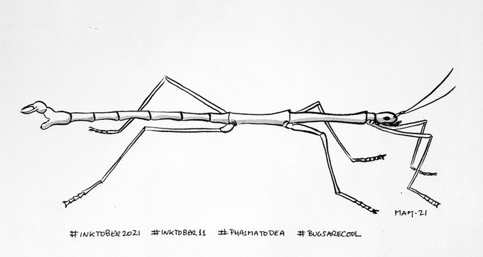 "Fantasmas" o "apariciones", es lo que significa #Phasmatodea el 11º orden de #insectos para #inktober2021 y es que los bichos palo son los reyes del camuflaje. Existen 3000 spp y aparecieron hace 300 ma #insects #stickinsect #bugsarecool #entomologodeguardia @ento_e