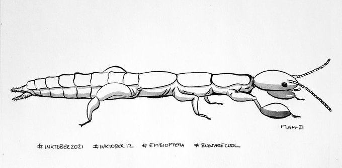Los "tejedores" es el 12º orden: #Embioptera para #inktober2021 Son #insectos con glándulas de seda en las patas anteriores y cuando los tocas hacen marcha atrás. Existen unas 400 spp. y se originaron hace 170 ma. #insects #webspinners #bugsarecool #entomologodeguaria @ento_e