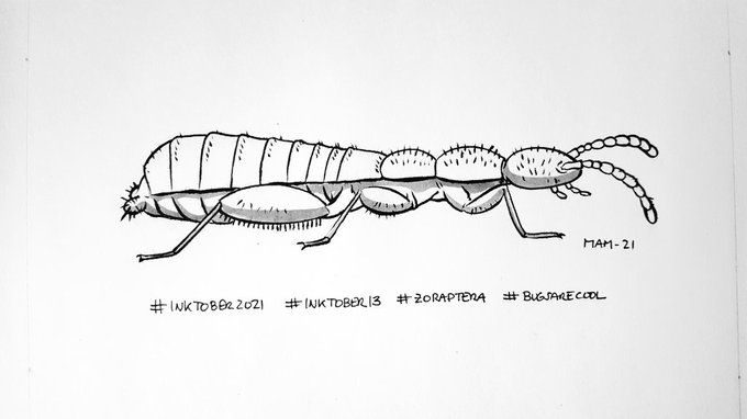Uno de los órdenes de #insectos más misterioso con solo 44 spp. y originados hace 200 ma los #Zoraptera forman colonias de individuos sin alas y sin ojos, mientras que los reproductores son alados #inktober2021 #insects #angelinsects #bugsarecool #entomologodeguardia @ento_e