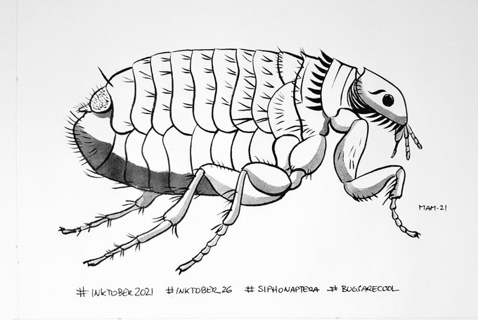 "Tiene malas pulgas" sería la expresión que usaríamos con el 26º orden de #insectos los #Siphonaptera ectoparásitos originados hace 50 ma y que tienen unas 2500 spp #inktober2021 #insects #fleas #bugsarecool #entomologodeguardia @ento_e