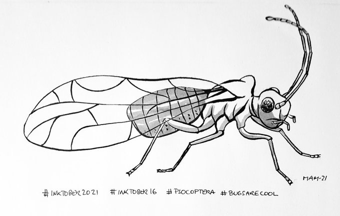 Los #Psocoptera (orden 17º) son #insectos muy comunes pero pasan muy despercibidos; piojos de los libros y de la corteza con 6000 spp. y originados hace 250 ma #inktober2021 #insects #booklice #barklice #bugsarecool #entomologodeguardia