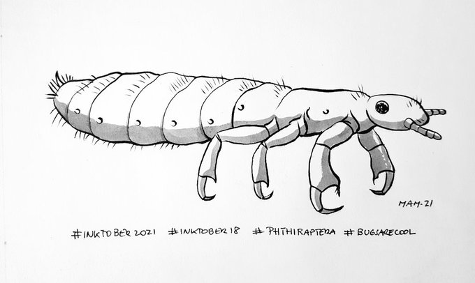 El 18º orden de #insectos es difícil de pronunciar pero fácil de reconocer 😁 #Phthiraptera son los piojos y ladillas que tienen las patas modificadas, 5000 spp. la mayoría en aves y se originaron hace 44 ma #inktober2021 #insects #lice #bugsarecool #entomologodeguardia @ento_e