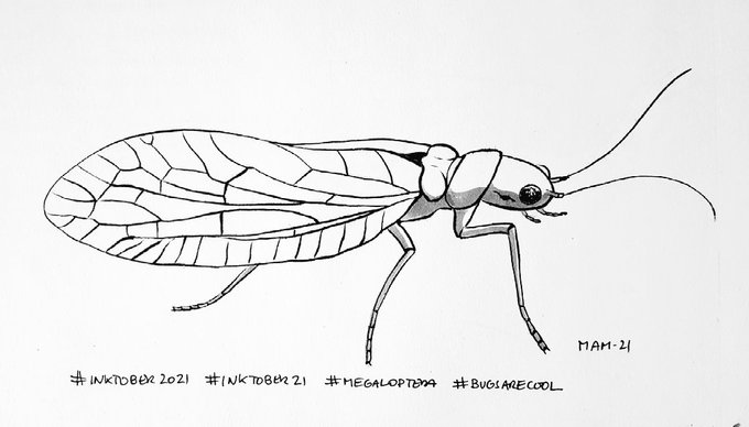 Para el orden 21 de #insectos tenemos a los #Megaloptera que tienen las larvas acuáticas, se consideran fósiles vivientes con 300 spp. y se originaron hace unos 300 ma. #inktober2021 #insects #dobsonflies #bugsarecool #entomologodeguardia @ento_e
