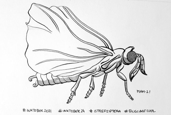 Uno de los órdenes de #insectos más "extraterrestre" es #Strepsiptera (24º) con el primer par de alas modificados en halterios y parásitos de otros insectos. Hay unas 500 spp. y aparecieron hace 100 ma #inktober2021 #insects #twistedwing #bugsarecool #entomologodeguardia @ento_e
