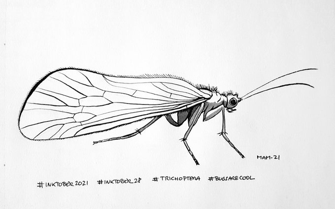 El 28º orden es para #Trichoptera #insectos con larvas acuáticas que son buenos bioindicadores, tienen 14.000 spp y aparecieron hace 250 ma #inktober2021 #insects #caddishfly #bugsarecool #entomologodeguardia @ento_e