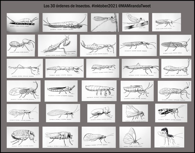 Y aquí acabo el #inktober2021 con un recopilatorio de los 30 órdenes de #insectos que he ido haciendo así como he podido 😅😅 Espero que haya servido para divulgar la diversidad de este grupo tan impresionante porque #bugsarecool y muchas gracias a l@s que habéis RT y ❤️#insects