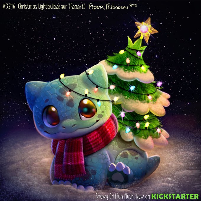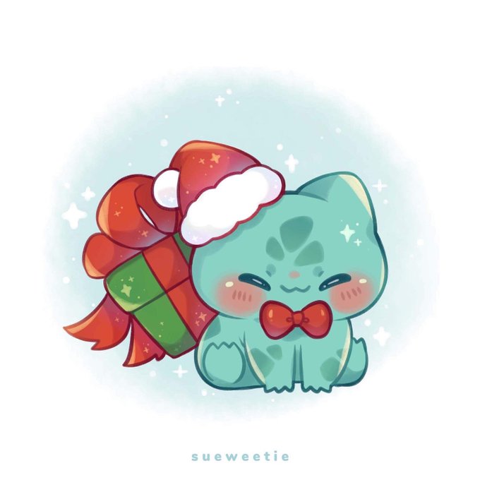 3216. Christmas Lightbulbasaur (Fanart) Hey guys, thought we'd make another Pokemon fanart, but have it be Christmas themed this time :) #art #artist #illustration #cute #pokemon #bulbasaur #christmas #christmas #holidays