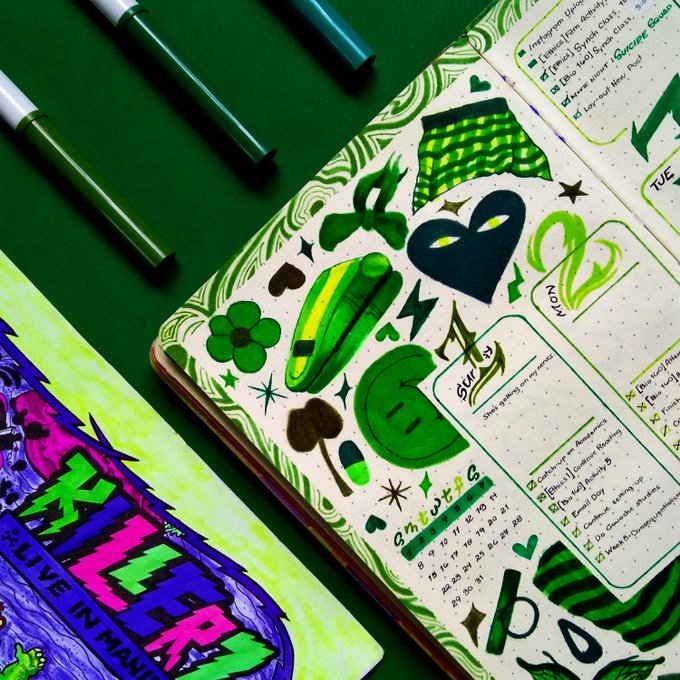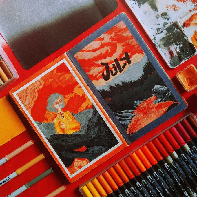 𝑩𝒖𝒍𝒍𝒆𝒕 𝑱𝒐𝒖𝒓𝒏𝒂𝒍 𝑼𝒑𝒅𝒂𝒕𝒆 Went back to traditional for July's cover spread- yes, I used gouache- finally! The theme is outdoors- which is weird cause we're literally in the middle of an effing pandemic. #ArtPHCult #BulletJournal #BuJo #ArtistsofSEA