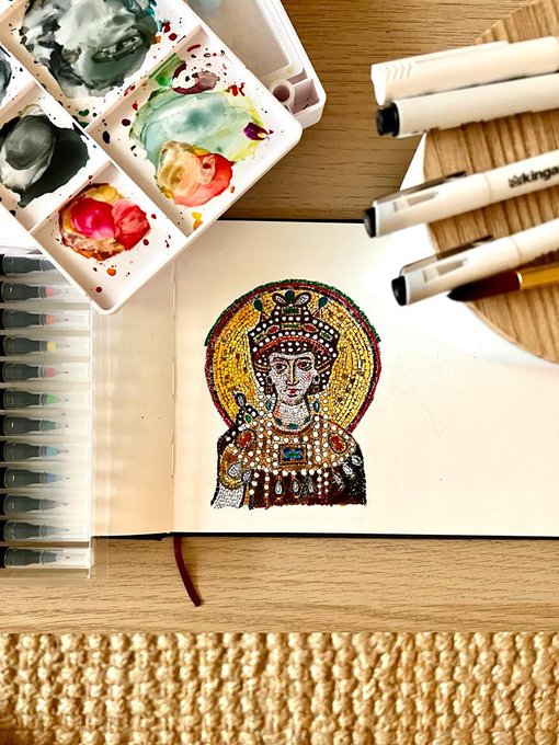 Día 23: Fragmentación #illustraink @illustraciencia #Byzantium #EmpressTheodora #ByzantineArt #artoftheday #illustration #watercolor #archival #illustrationartists #bulletjournal #artwork #sketch #handdrawn #illustrationart #drawingart #artist #doodle #lineart #ink #Inktober
