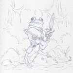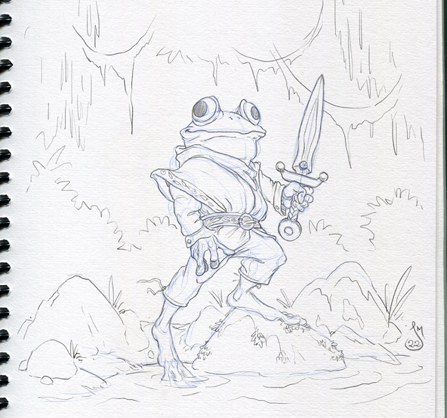 Seek thee aid through the swamp of Maglidor? Sir Tugwillow, hero of Mudhollow is here to guide ye! #DailyDoodle #KidLitArt #DungeonsAndDragons #DandD #dndart #Frogfolk #Bullywug