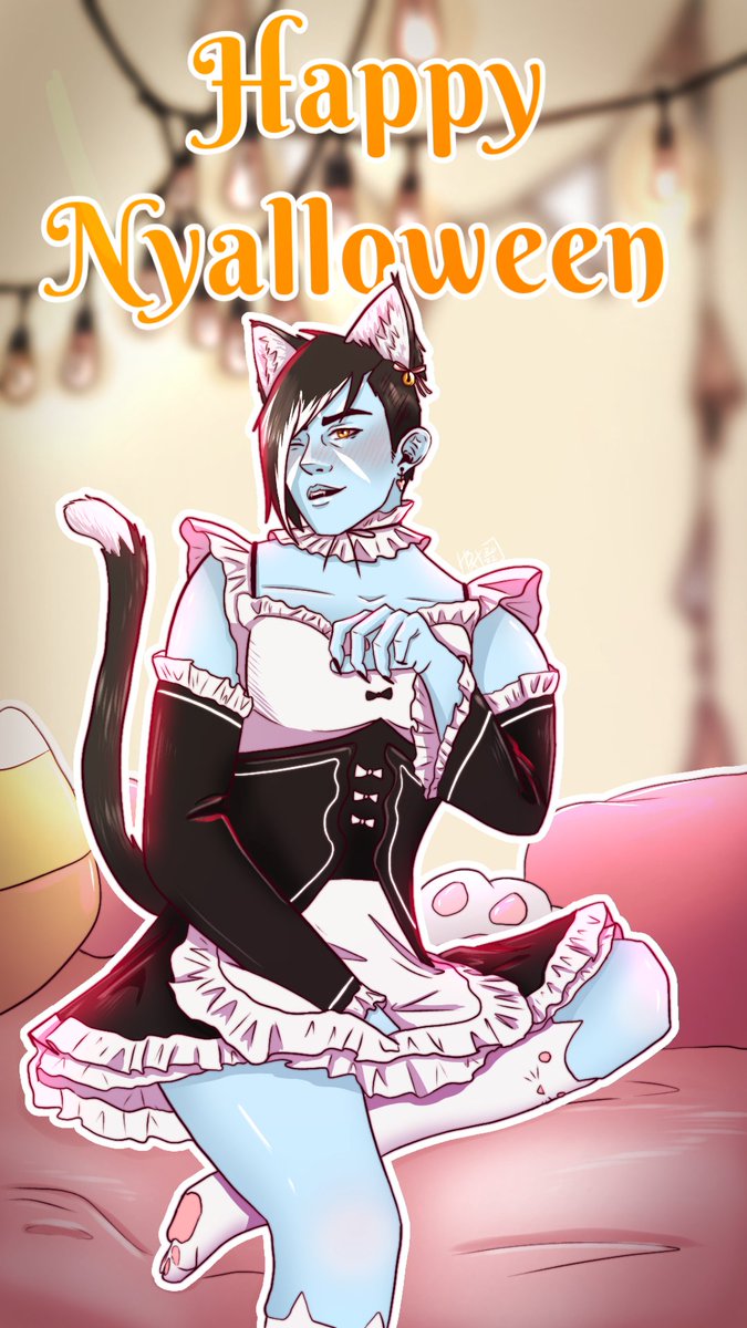 Happy Nyalloween 🎃💙 from my favorite catboy 😹 forgive me for my sins LOL -- #destiny2 #bungie #Destiny2Art #digitalart #ibispaint