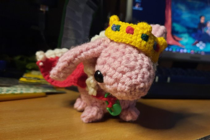 This took way too long to crochet, but he's here! BunnyBlade!! And I also just now realised I forgot to crochet a carrot for him, it's 5:30 am, give me some slack- #technobladefanart #technofanart #bunnyblade #originsmpfanart #crochet
