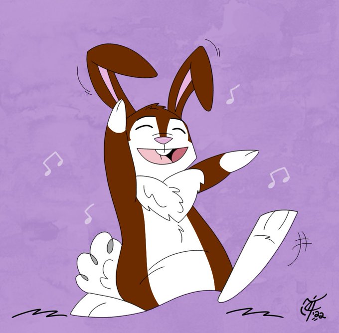 A character sketch commission for @BabArt101Dal - his OC, Snuggles, doing a funny little dance 🐰🕺🎶☺️ #Snuggles #bunny #bunnyrabbit #dancing #cuteandfluffy #ocart #charactersketch #digitalsketch #sketchcommission #commissionart