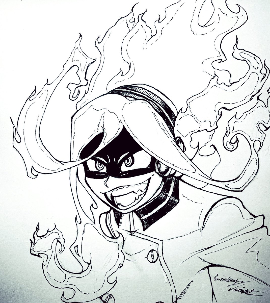 #inktober2022 Day 5: Flame #burnin from #myheroacademia I fixed my Micron pens!! I thought I broke the tips when I was drawing Harriet. For the last 4 drawings, I was only using a sharpie and a ballpoint pen. #inktober2022flame #アニメ #僕のヒーローアカデミア #マンガ