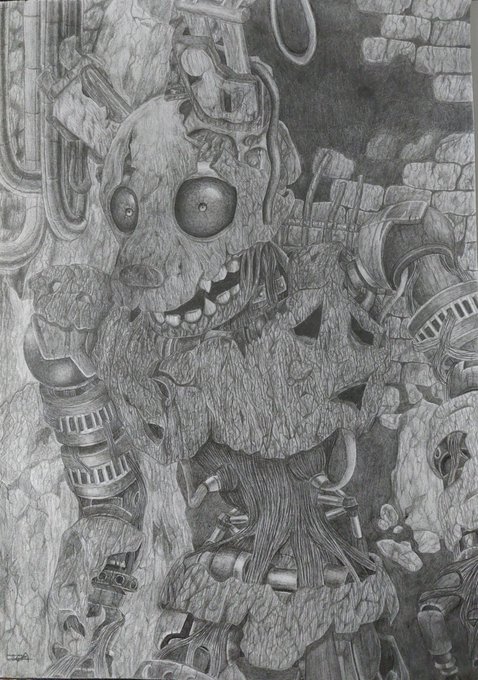 I done did it again I outdid my last drawing- 64½ hours this time, new record wooooo 🤸♂️bUT OH MY LORD HOW DID I DO THIS WHAT #FNAF #fnafsecuritybreach #fnaffanart #burntrap
